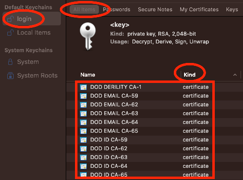 Please know... IF You have any DoD certificates already located in your keychain access, please delete them prior to running the AllCerts.p7b file below.
